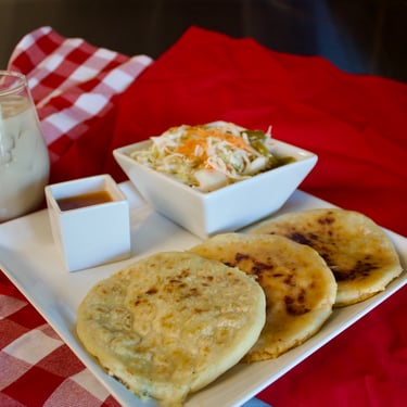 Enjoy our tasty pupusas, made fresh and served with flavorful curtido.
