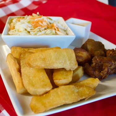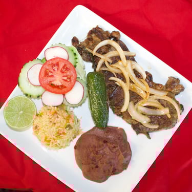 Made with pork, accompanied with traditional Salvadoran-style yuca and vegetable salad